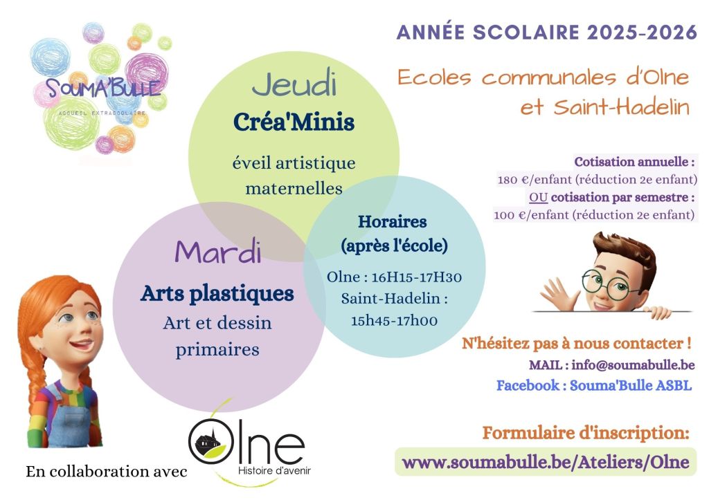 NB : les enfants de l’Ecole Saint-Louis de Olne sont également les bienvenus à nos ateliers.