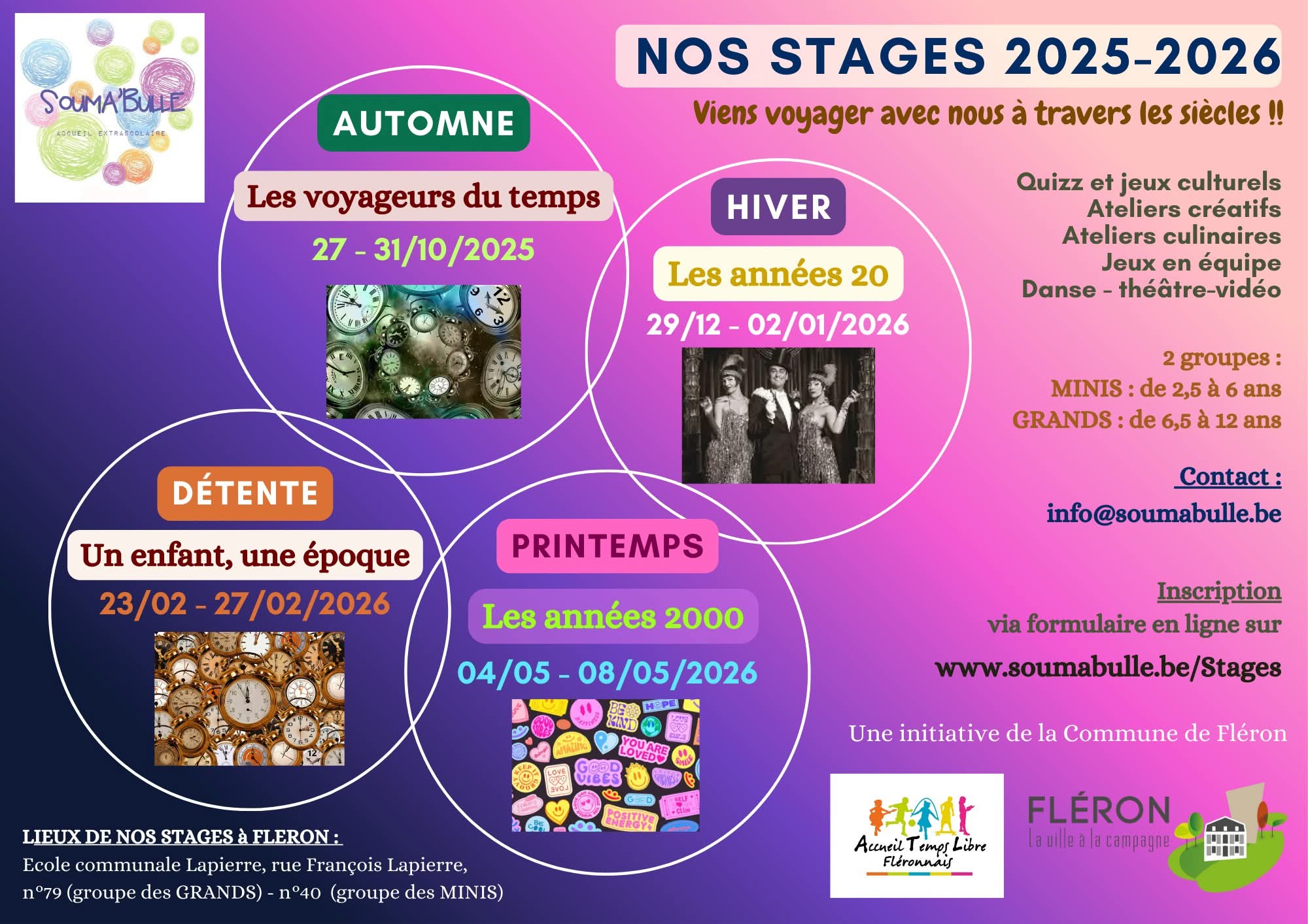 PROCHAINS STAGES : congé d’hiver du 29 décembre 2025 au 2 janvier 2026