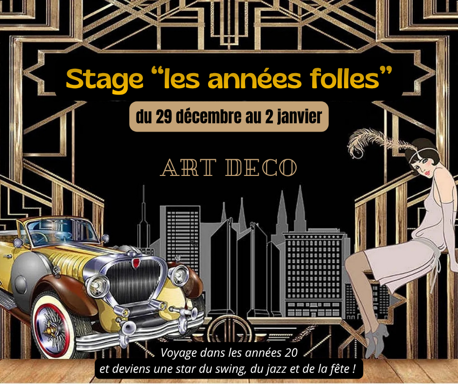 Au programme de ce stage décoiffant : 💃 initiation au Charleston et aux danses rétro, 🎭 ateliers créatifs (accessoires typiques de l’époque), 🎺 jeux, musique swing et ambiance cabaret garantie !